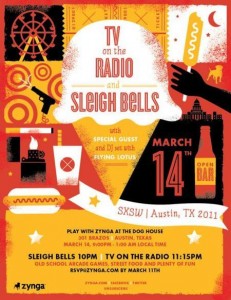 The best week of the year did not disappoint, though this year I focused a lot of energy on getting into shows I didn’t think I would be able to get into. There’s certainly an extra feeling of reward when you’re granted access to an exclusive party with A-list bands and free food and booze. My personal highlights were the Zynga party (flyer above) and catching Queens of the Stone Age at La Zona Rosa. Another great free party showing as well this past year, especially Mess With Texas, which never disappoints. Saw the Strokes at the Shores, too, which was great. While 2010 might be remembered as the year of mini-riots and ridiculous overcrowding, for me it was just a regular old SXSW, fun, booze, catching up with old friends, and seeing some great music.
